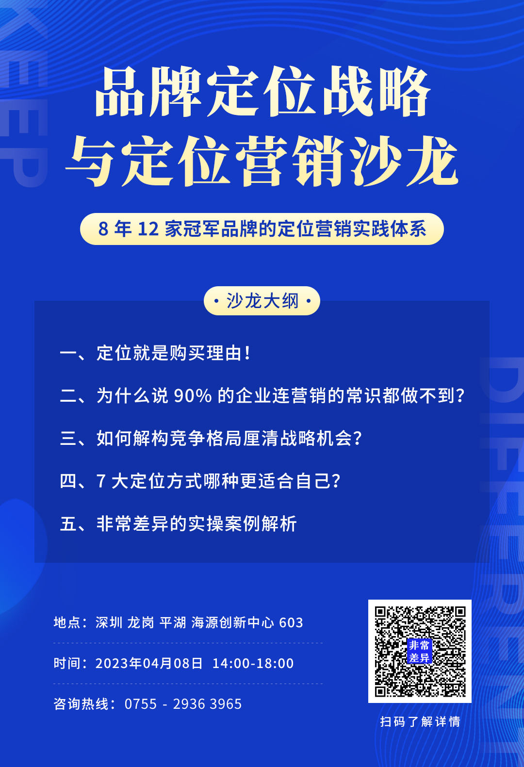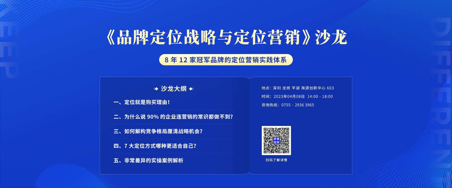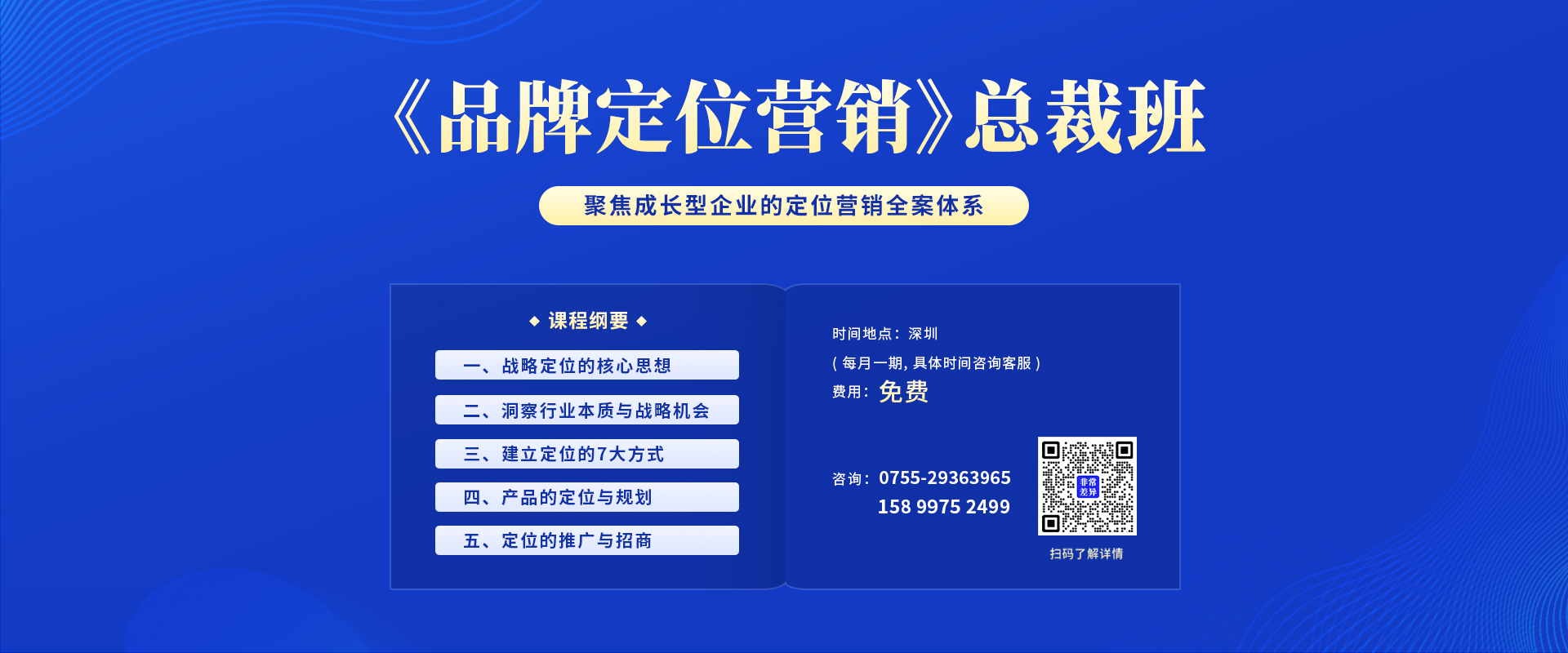 100分的定位能力+全案型陪跑能力+全托式招商落地能力是非常差异最核心的优势,并以没有增长就是失败,让定位落地有声为经营根本。