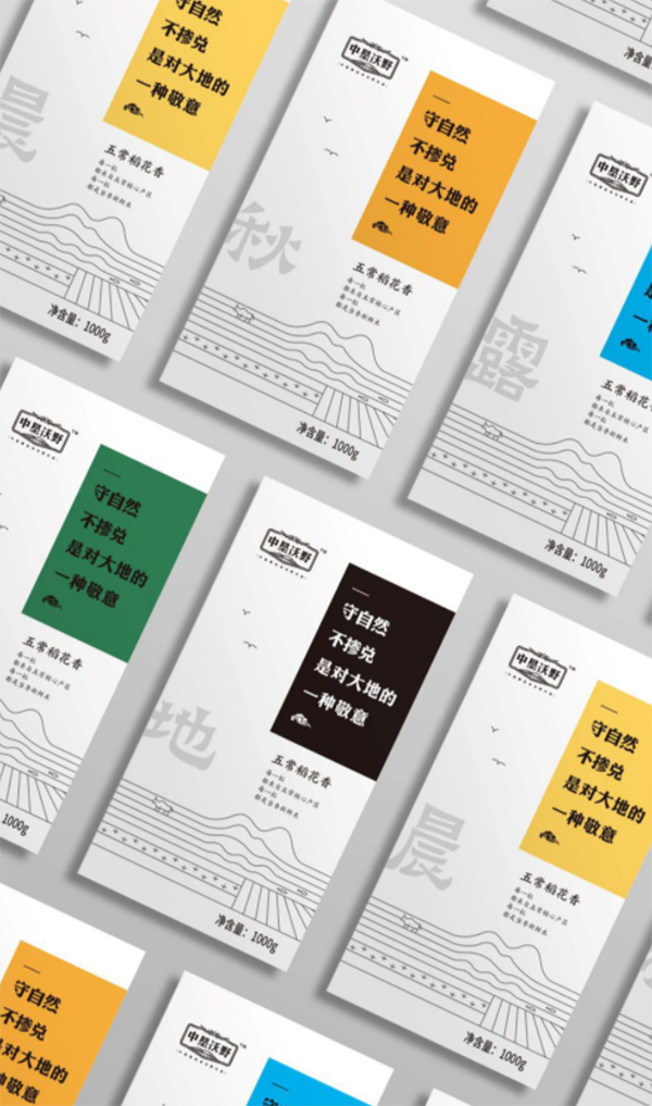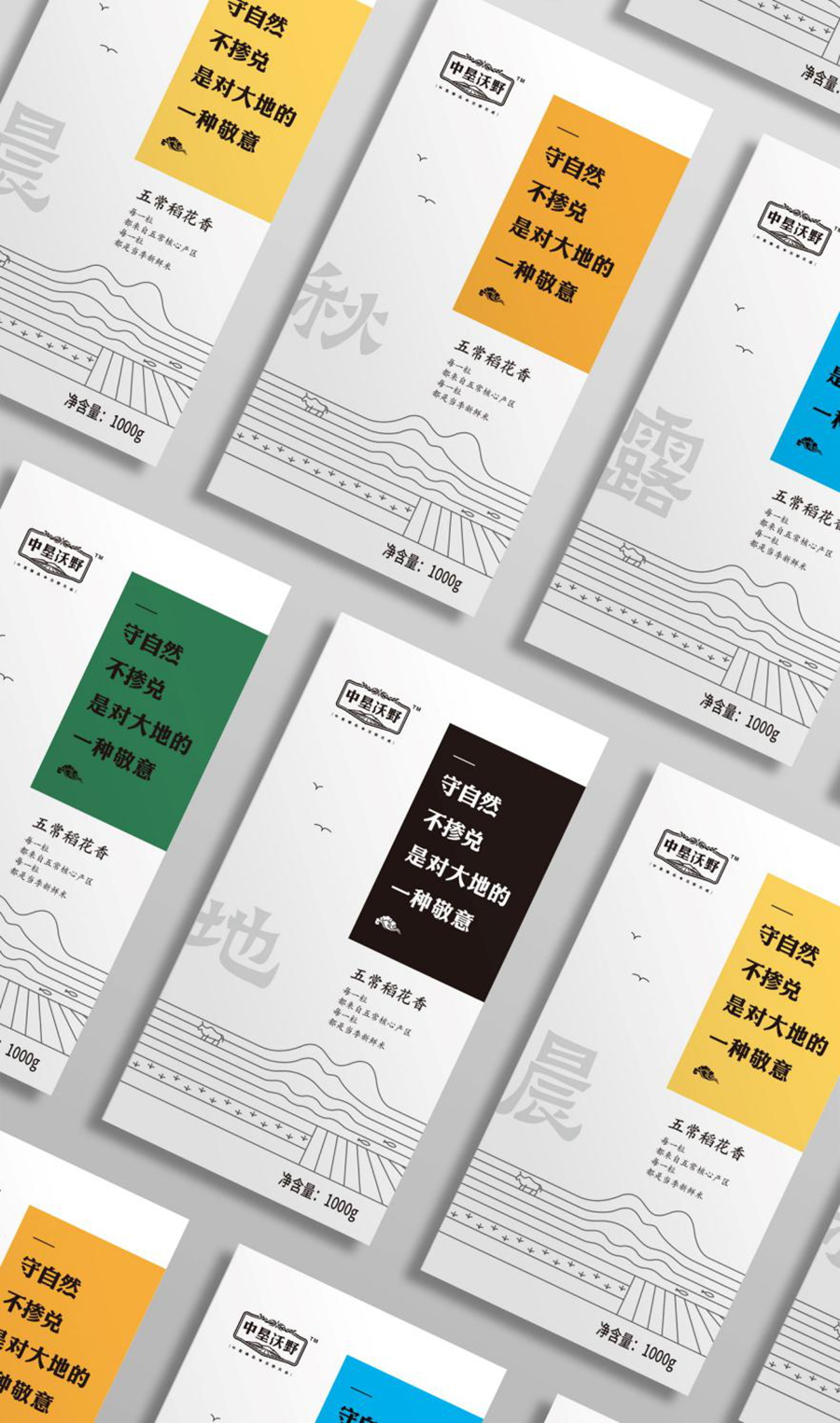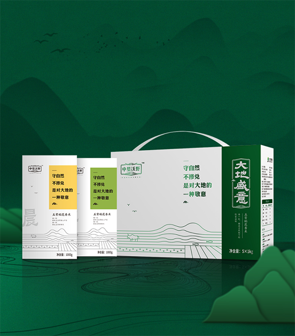礼盒关键在于“礼”,意境和调性最重要。五常稻花香的珍贵在于其得天独厚的地理环境,所以我们把它的地貌“六山一水半草二分半田”格局用线稿形式描绘,体现自然的山水生态之美。
