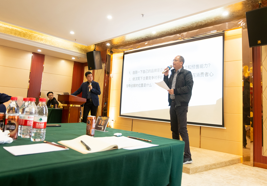 为了让大家更好地理解品牌战略,并学以致用,课程上也设置了一些互动环节。问答互动:1.自测一下自己的品牌是否有明确优势占位和预售能力?2.一次写下主要竞争对手的名称,并写下对手在消费者心智中占据的位置是什么?