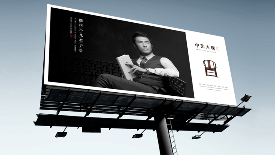 我们从红木的本质出发,找到了“君子”这个已有符号,君子拥有坚韧而从容的品格,沉稳而端正的教养,淡然而内敛的秉性,正如红木一样谦和,内敛,雄伟,而又温润。中艺大观定位于“崇扬新君子风尚”,“拙雅不凡君子贵”为广告诉求,以红木为载体,崇扬君子风尚。让高贵的红木家具真正蕴含高尚的价值。“君子”就是中艺大观给消费者贴的标签,是身份品格的象征。
